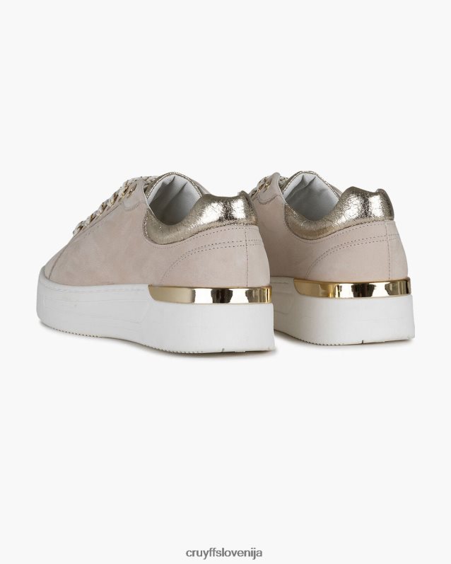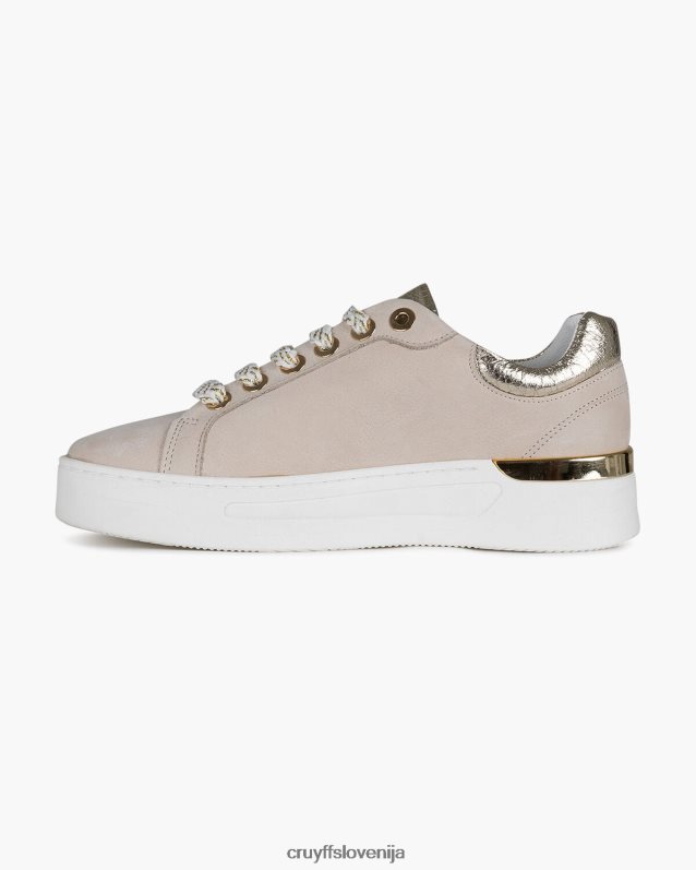 ženske superge cruyff copalux v bež barvi. razkošne superge za vsak dan s podplatom na platformo. zgornji del je izdelan iz nubuka v kombinaciji s speccio zlatimi ploščami na stabilizatorju, petnem jezičku in jeziku. obogatena z belo-zlatimi dvobarvnimi vezalkami, zlatimi očesci in zlatim cruyff znakom ob strani. na robustnem in klasičnem podplatu s platformo.
