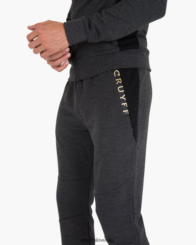 črne trenirke cruyff emilio. pletene trenirke z ozkim krojem. s kontrastnimi vložki, dvema stranskima žepoma z nevidnimi spiralnimi zadrgami in zadrgami na robu. podrobno opremljen z zlatim znakom cruyff na hrbtnih zadrgah, kovinskimi zadrgami z blagovno znamko in dvobarvnimi vrvicami.