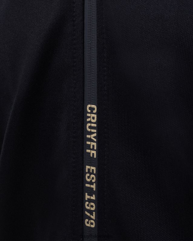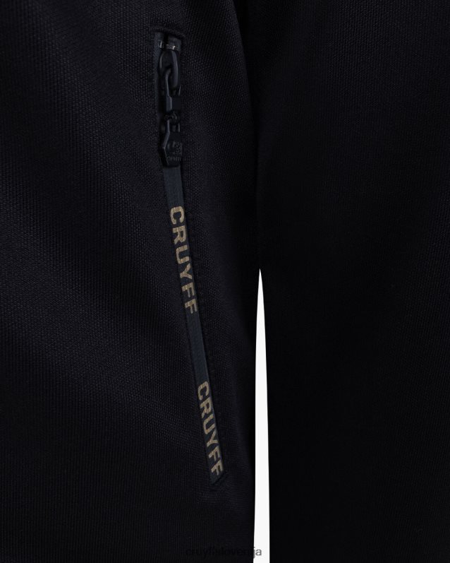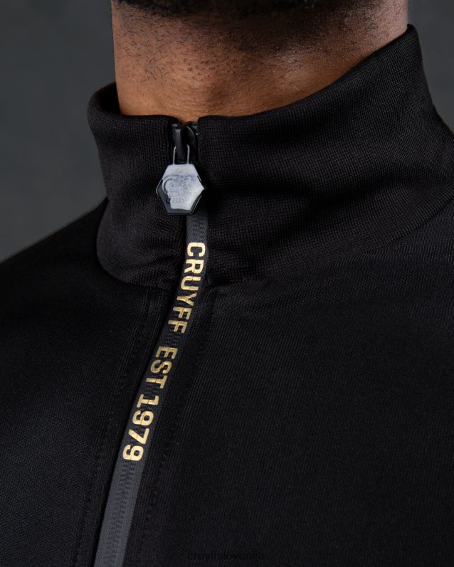 cruyff enzo trenirka majica za moške v črnem. visokokakovosten triko top iz poliestra. opremljen z dvema stranskima žepoma z zadrgami in kovinskimi zadrgami. zadrge so obogatene z obrnjeno prevlečeno zadrgo z oznako cruyff v zlati barvi.