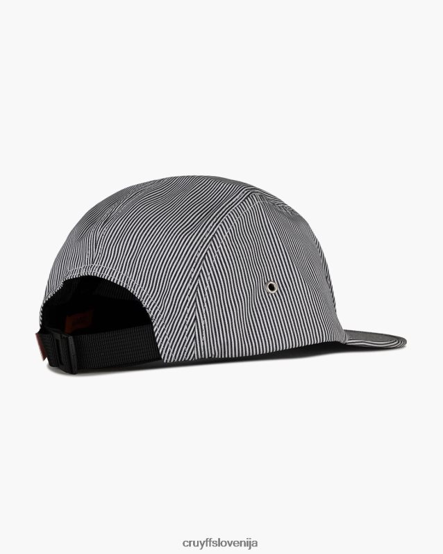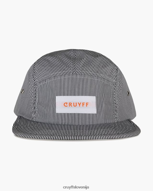 moška črna kapa cruyff bruno 5 panel. kapa s 5 deli s črtami, barvanimi iz preje, in tkano oznako cruyff na sprednji strani. opremljena s športnim zapiranjem na klik. popolno za kombiniranje s srajco bruno.
