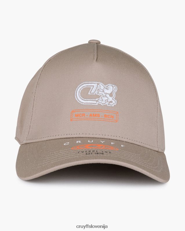 vrč cruyff saul za moške v taupe. klasična vrčasta kapa iz bombažnega keperja. obogatena z mešanico potiskov in vezenin na kapici in vizirju.