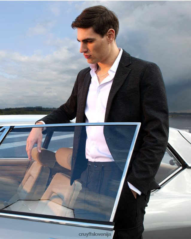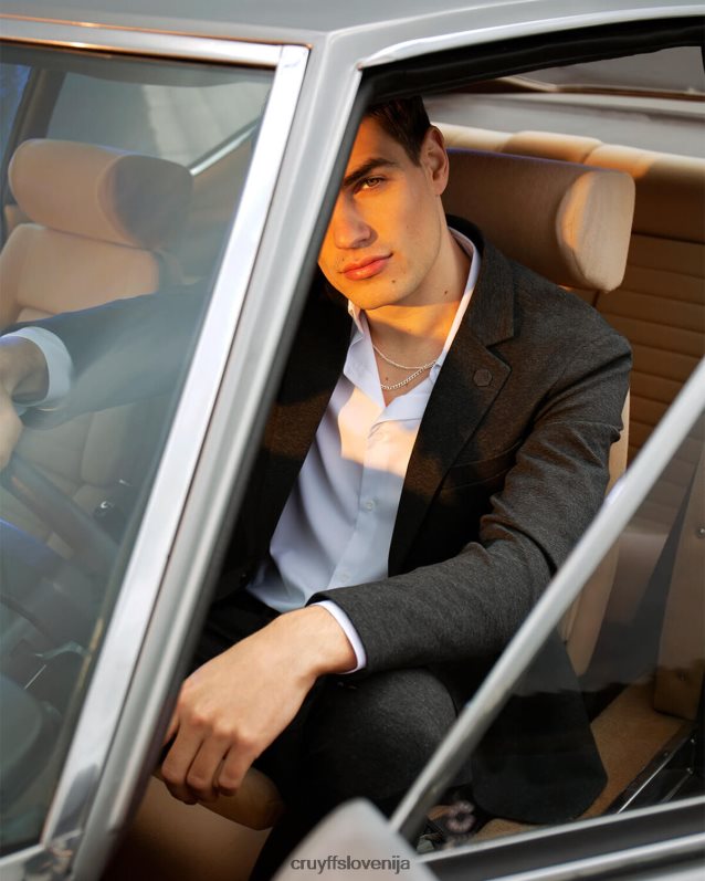 moški blazer cruyff domenec v črni barvi. moderen blazer ozkega kroja iz težkega italijanskega bombaža. opremljen z žakard podlogo, gumbi znamke cruyff, žepom z zadrgami in zadrgami na robovih za moderen videz.