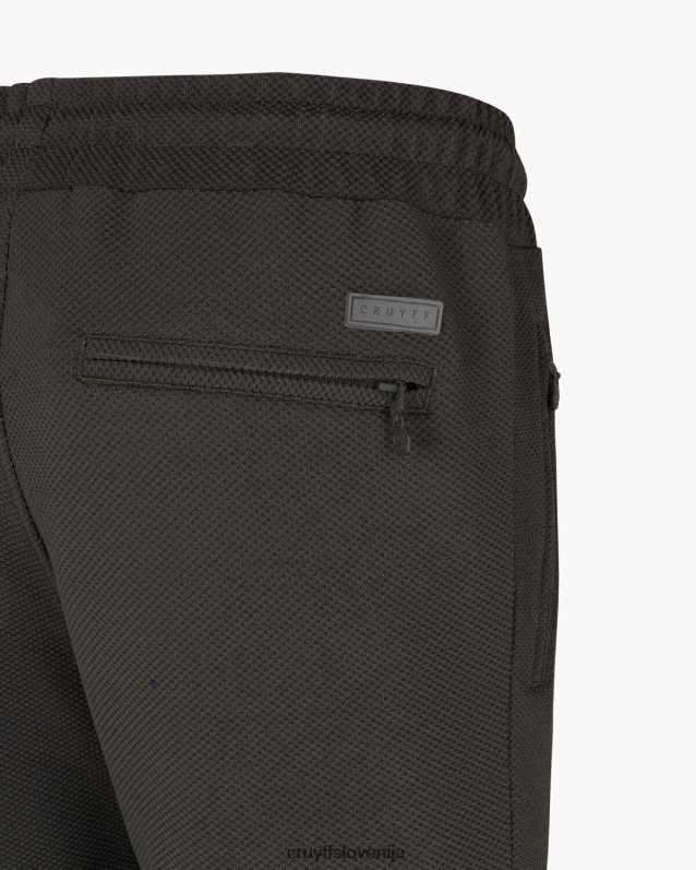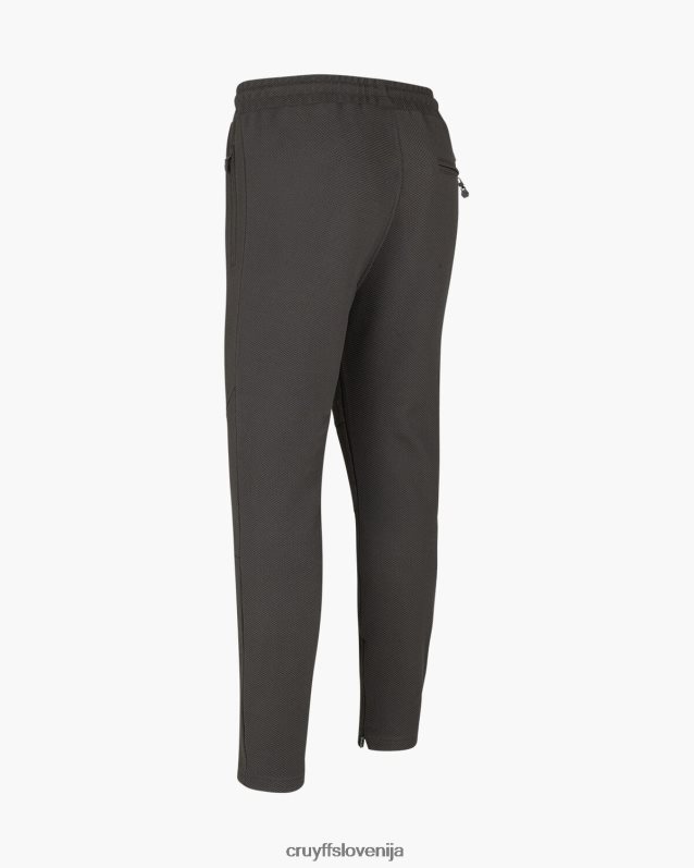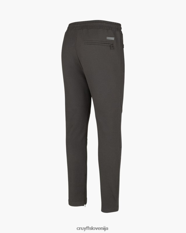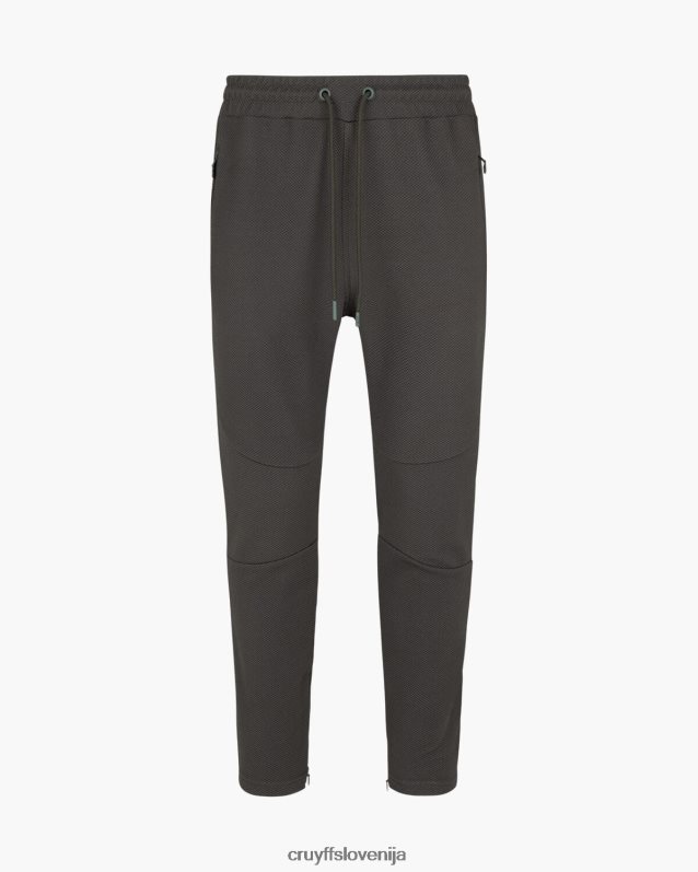 moške trenirke cruyff santiago v temno zeleni barvi. trenirke ozkega kroja iz luksuzne teksturirane poli tkanine. opremljen z elastičnim pasom z vrvicami, dvema stranskima žepoma z zadrgo in zadnjim žepom z zadrgo. obogaten z gumijastim cruyff znakom nad zadnjim žepom.