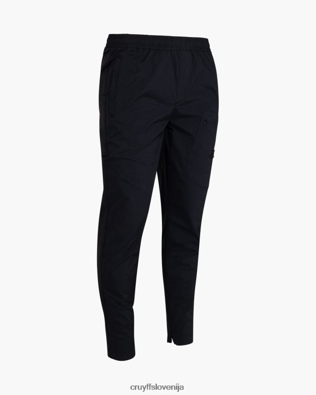 črne trenirke cruyff scott so razkošno tkane trenirke s subtilnim leskom. diagonalno nameščen žep z zadrgo in manšete z zadrgo dajejo hlačam uporabnost. označen z veliko gumijasto značko Cruyff. iz 95 % poliestra in 5 % elastana.