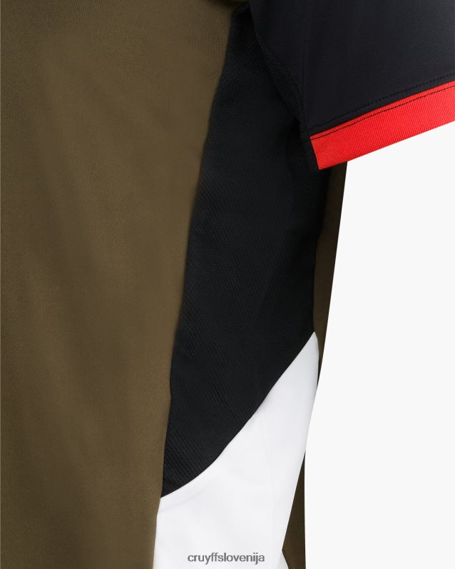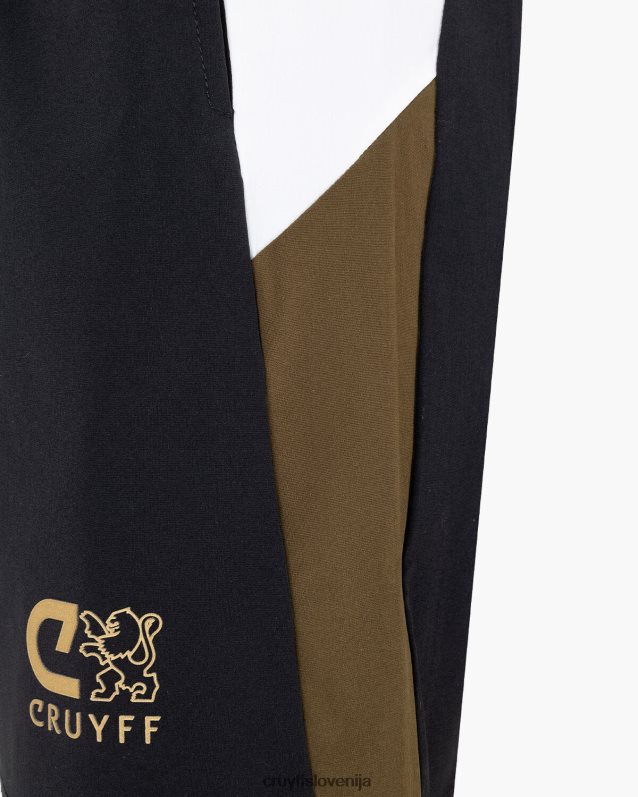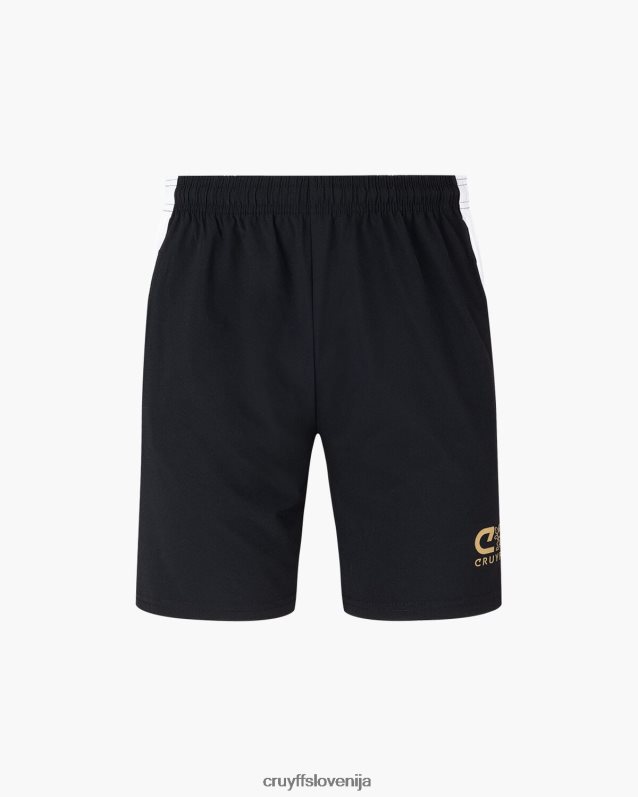 cruyffova sprinterska obleka za moške v črnem. Celoten komplet iz poliestra in opremljen z običajnim prileganjem. zgornji del ima kontrastne vložke na ramenih in ob straneh. na levi strani prsi je zlat logotip c-lev. kratke hlače so opremljene z dvema stranskima žepoma, vrvicami, kontrastnimi vložki ob straneh in zlatim logotipom c-lev na levi nogi.