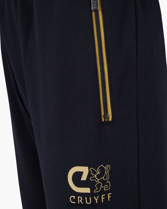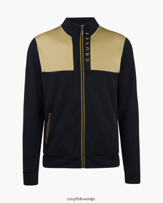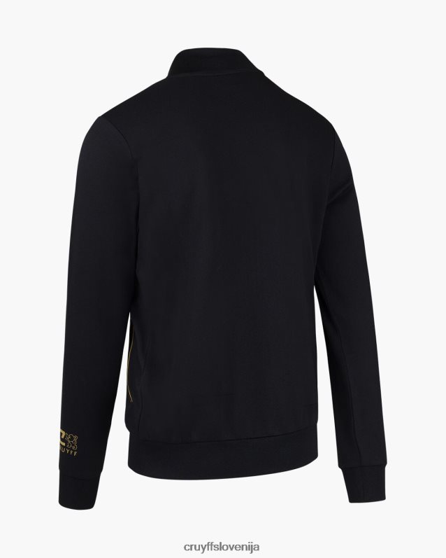 cruyff clayton obleka za moške v črnem. trenirka iz lahkega poli flisa, opremljena z običajnim krojem. trenirka ima polno zadrgo in kontrastno ploščo na prsih. opremljen z dvema stranskima žepoma z zadrgami s kontrastnimi robovi. trenirke imajo dva stranska žepa z zadrgami in vrvicami. obleka je zaključena s cruyffovim kontrastnim znakom cruyff.