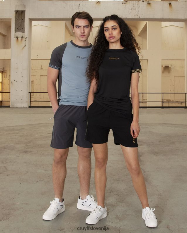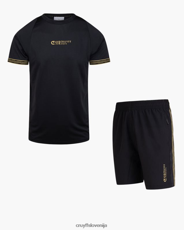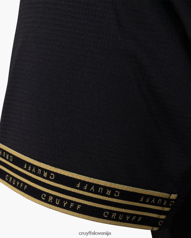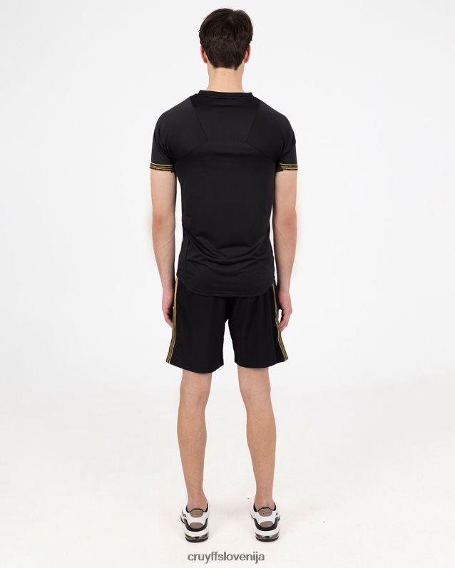 črno-zlata moška obleka s kopiti Cruyff. trenirka iz 100% poliestra, ki med vadbo ne drgne kože. majica je običajnega kroja in je obogatena z dvema kontrastnima stranicama in silikonskim logotipom c-lev na prsih. kratke hlače so prav tako izdelane iz 100% poliestra in so obogatene s silikonskim c-lion/cruyff športnim logotipom na levi nogi.