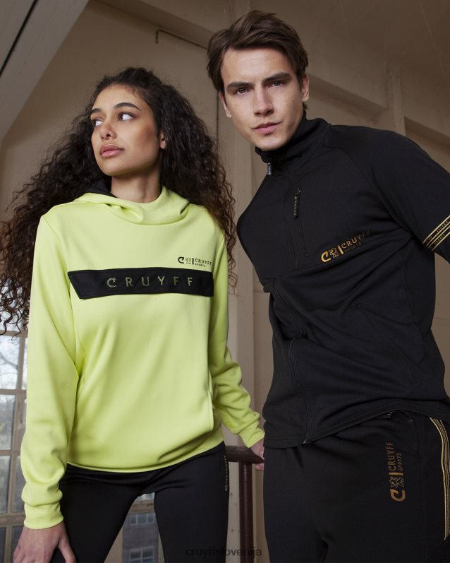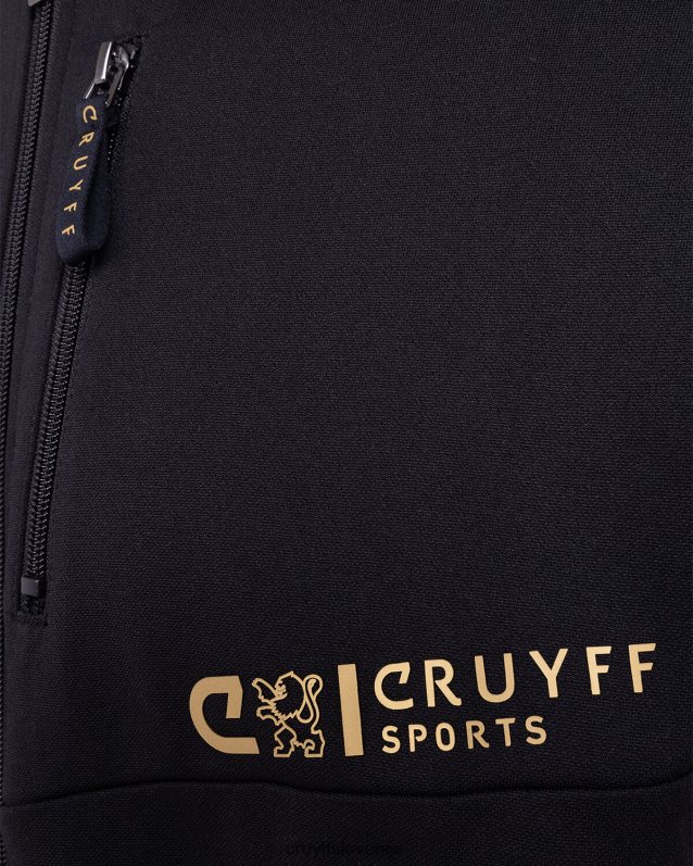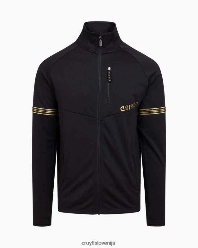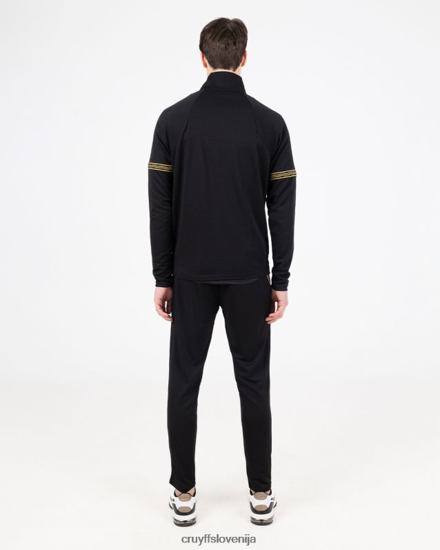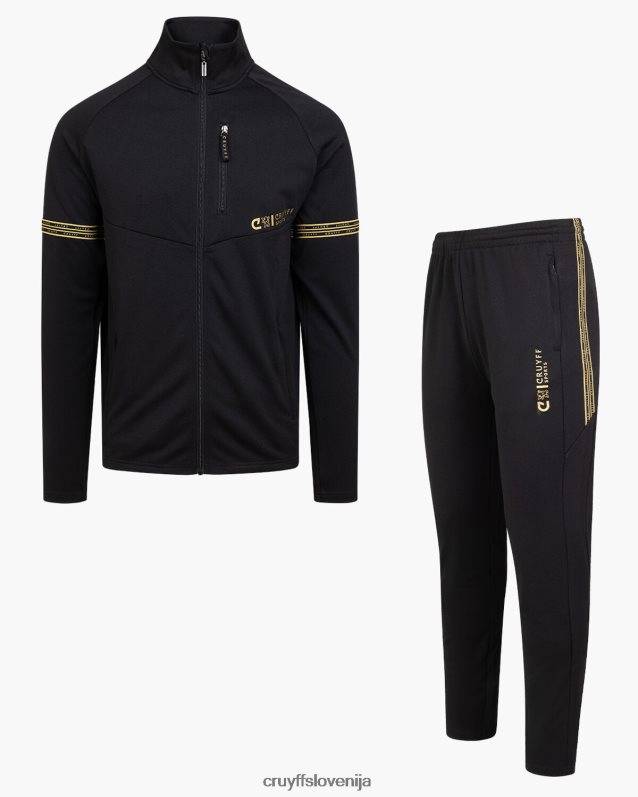 moška obleka cruyff minnow v črni in zlati barvi. popolna trenirka z zgornjim delom trenirke na zadrgo in trenirkami. poliestrski material je zračen, odbija vlago, uravnava temperaturo in se hitro suši. mehak material poskrbi, da se med vadbo ne drgne ob kožo. jakna ima dva stranska žepa z zadrgo in ščitnik za brado za zadrgo. obogatena z logotipom Cruyff Sports in trakom Cruyff Sports okoli rokavov. trenirke imajo dva stranska žepa z zadrgo, elastičen pas z vrvicami in oprijete noge. obogaten z logotipom cruyff sport, trakom cruyff sport in kontrastnimi vložki ob nogah.