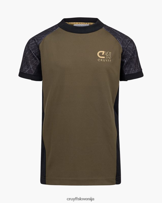 otroška sprinterska obleka cruyff v olivni barvi. Celoten komplet iz poliestra in opremljen z običajnim prileganjem. zgornji del ima kontrastne vložke na ramenih in ob straneh. na levi strani prsi je bel logotip c-leva. kratke hlače so opremljene z dvema stranskima žepoma, vrvicami, kontrastnimi vložki ob straneh in zlatim logotipom c-lev na levi nogi.