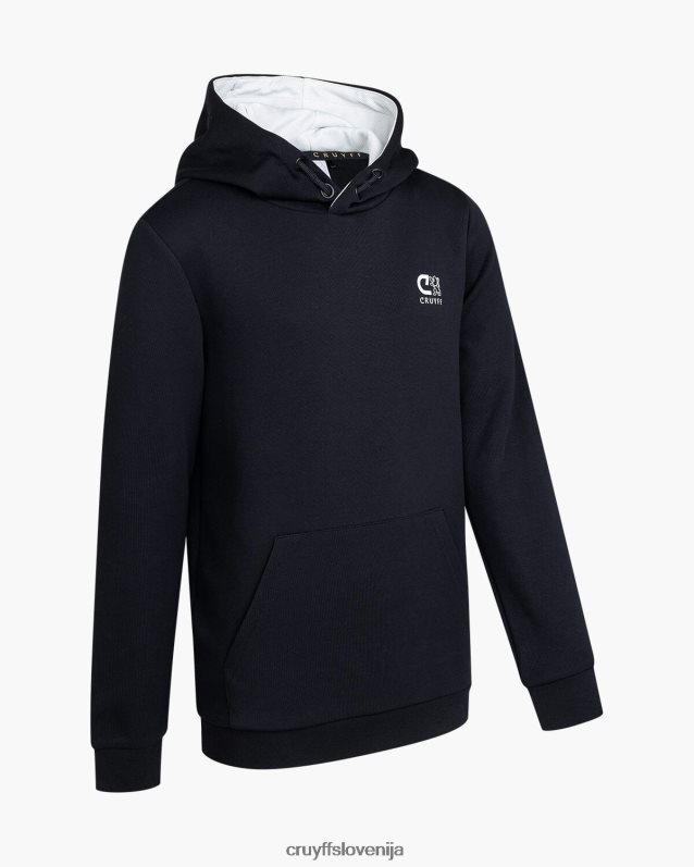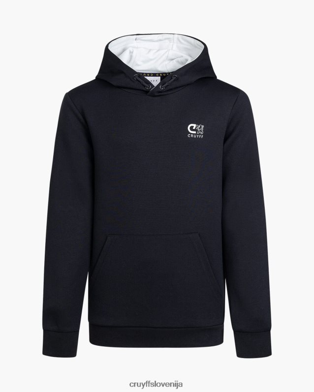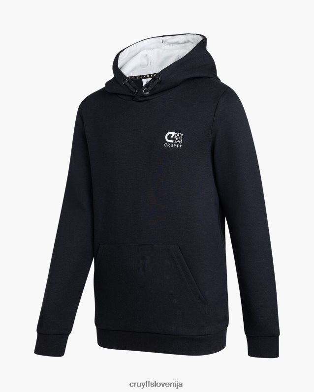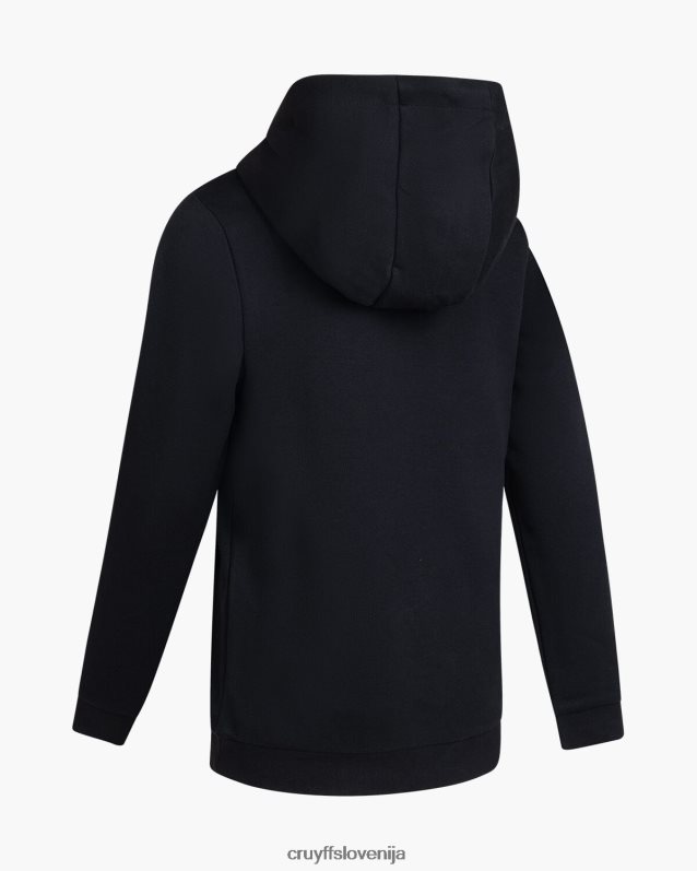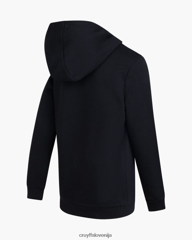 otroška obleka cruyff denver v črni barvi. tekaška obleka iz interlock blaga, opremljena z običajnim krojem. pulover s kapuco je opremljen s kapuco z vrvicami, kenguru žepom in oznako c-lev na levi strani prsi. tekaške hlače imajo dva stranska žepa, vrvice in oznako c-lev na levi nogi.