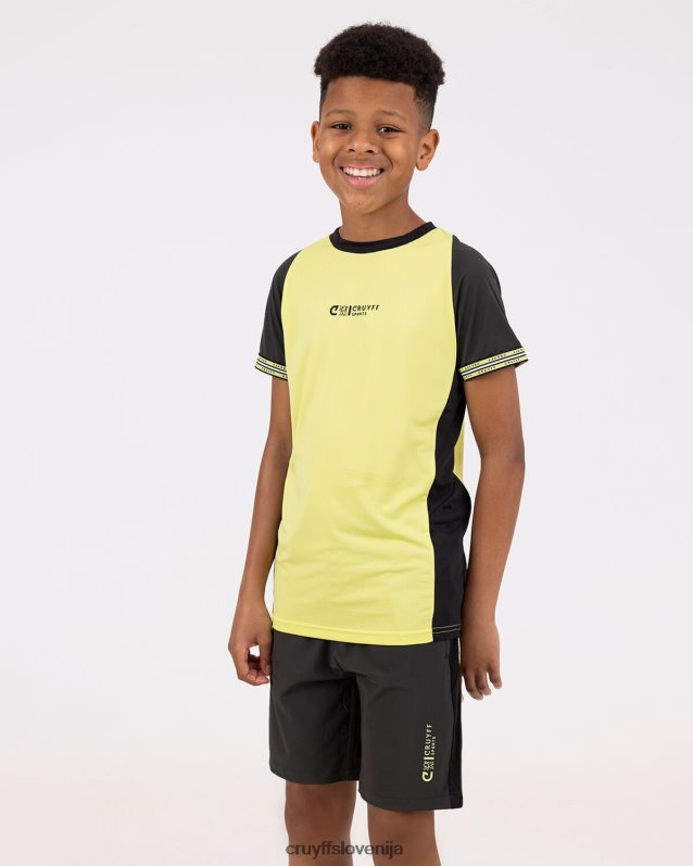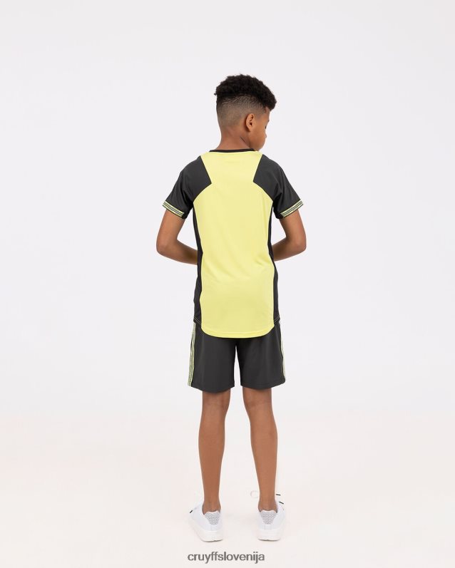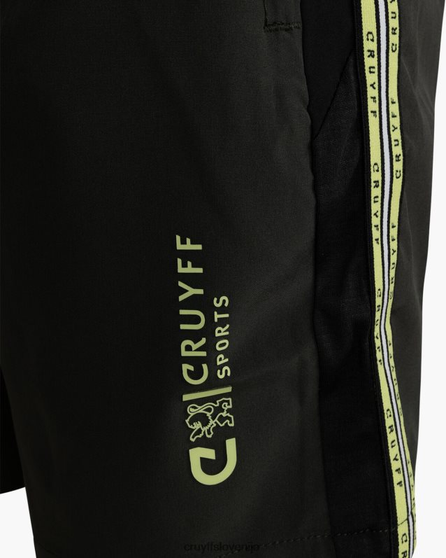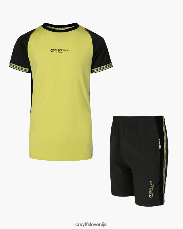 cruyffova kopitna obleka za mladince v olivno zeleni in svetlo zeleni barvi. trenirka iz 100% poliestra, ki med vadbo ne drgne kože. majica je običajnega kroja in je obogatena z dvema kontrastnima stranicama in silikonskim logotipom c-lev na prsih. kratke hlače so prav tako izdelane iz 100% poliestra in so obogatene s silikonskim c-lion/cruyff športnim logotipom na levi nogi.