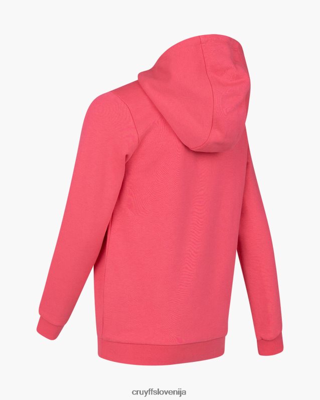 otroška obleka cruyff do v roza in črni barvi. bombažna obleka iz mehkega francoskega frotirja, opremljena z običajnim krojem. pulover s kapuco je opremljen s kenguru žepom in velikim znakom c-lev na prsnem delu. Hlače so opremljene z vrvicami, dvema stranskima žepoma in znakom c-lev.