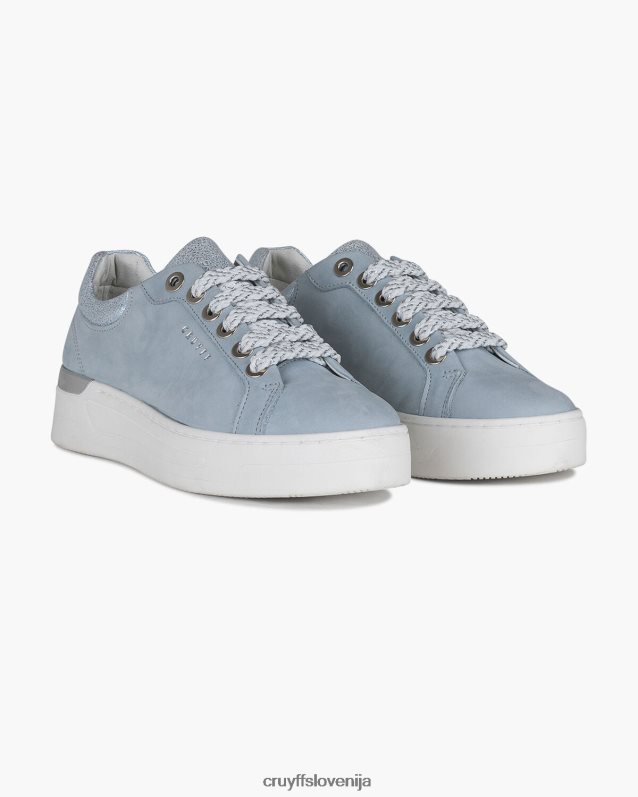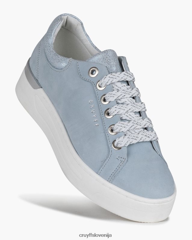ženske superge cruyff copalux v modri barvi. razkošne superge za vsak dan s podplatom na platformo. zgornji del je izdelan iz nubuka v kombinaciji s pikčastimi usnjenimi ploščami na petnem jezičku in jeziku. obogatena z belo-modrimi dvobarvnimi vezalkami, srebrnimi očesci in srebrnim znakom cruyff ob strani. na robustnem in klasičnem podplatu s platformo s sijočim stabilizatorjem pete.