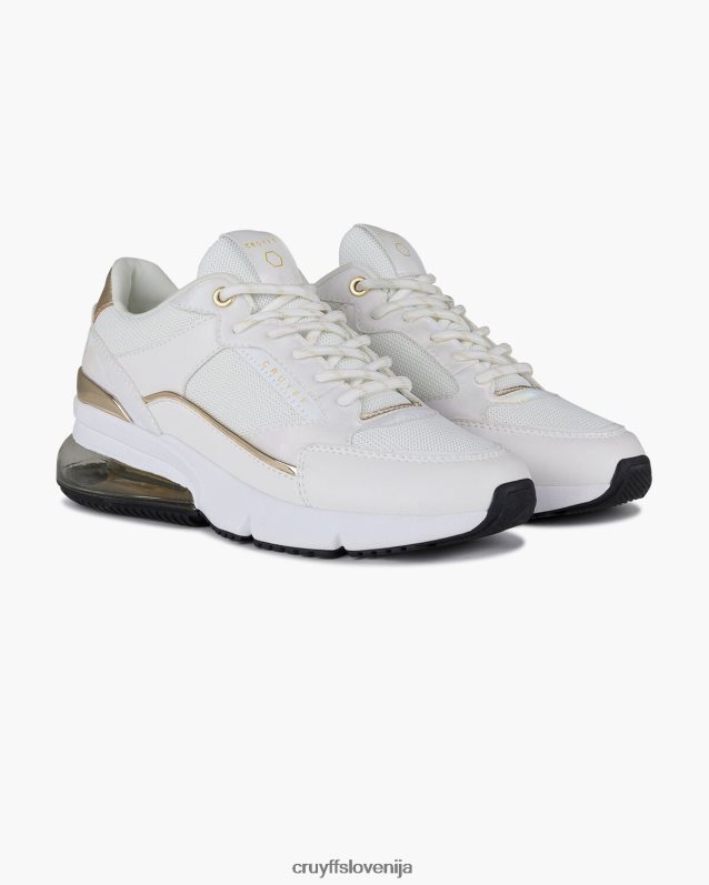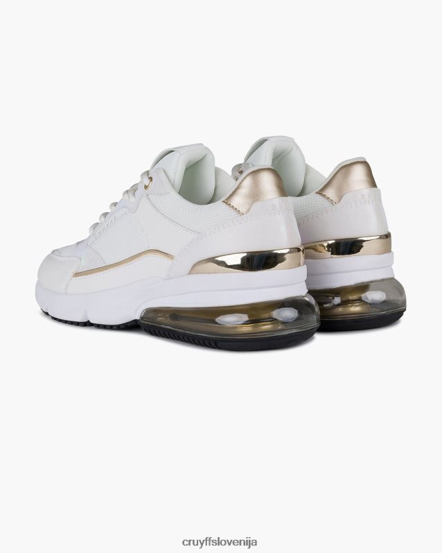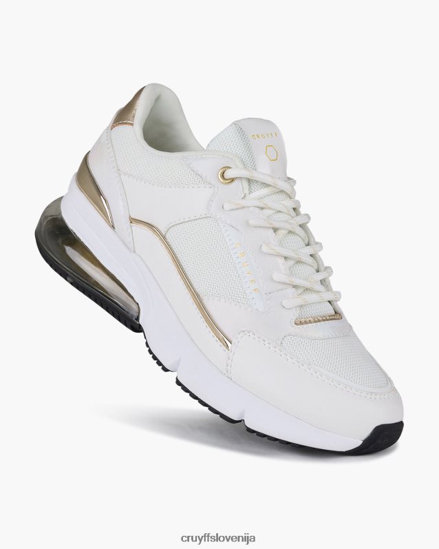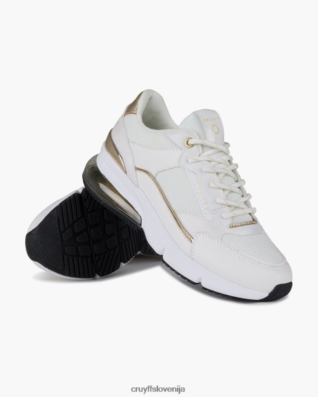 ženske superge cruyff diamond v umazano beli barvi. udoben tekač športnega videza. zgornji del je izdelan iz najlonske mreže, ki diha, v kombinaciji s podloženimi in semiš ploščami. zaključeno z zlatimi detajli blagovne znamke, dvobarvnimi vezalkami in zlato speccio podlogo. na debelem, po meri izdelanem podplatu z blazino.