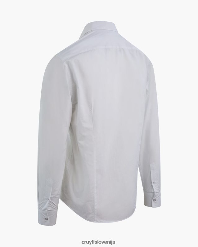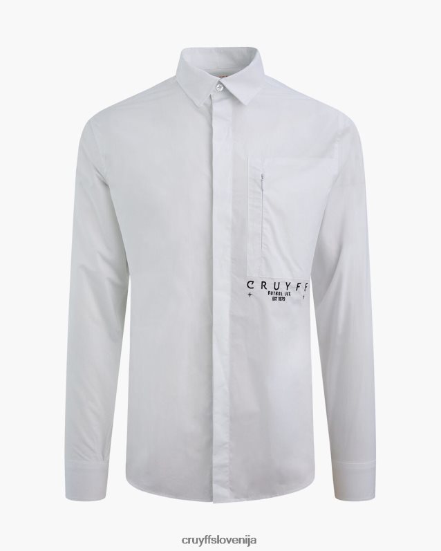 moška majica cruyff yago v beli barvi. ozka srajca na gumbe iz raztegljivega poplina. opremljen s skritim žepom z zadrgo na prsih s črnim znakom cruyff pod njim.