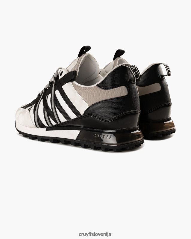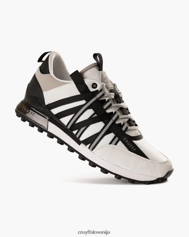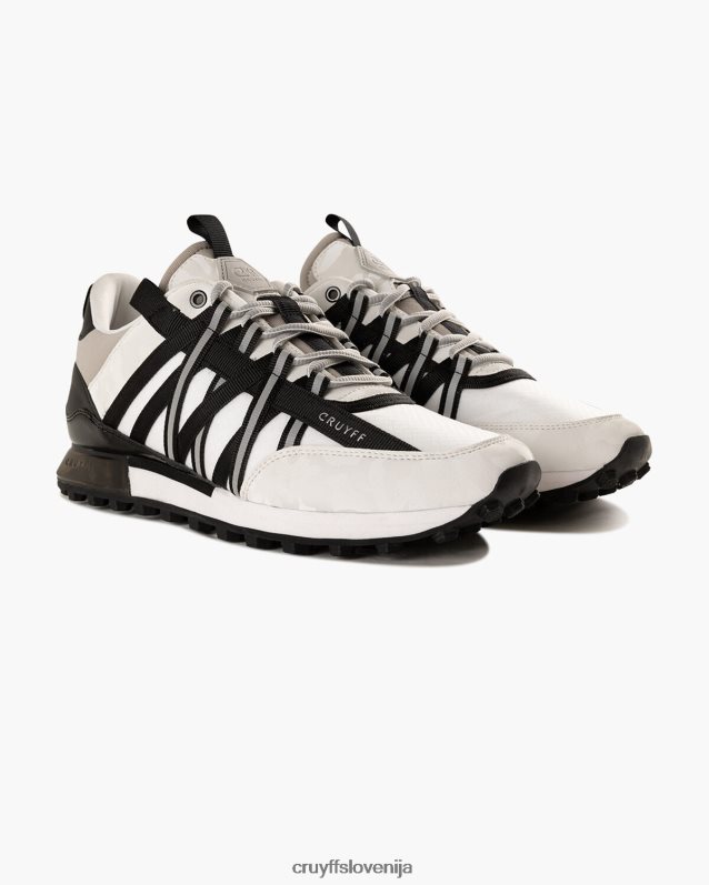 moške superge Cruyff Fearia v beli barvi. pohodniško navdahnjena superga, mešana z luksuznimi in športnimi elementi. nameščen na srednjem podplatu iz eva z neskončnim stabilizatorjem in podplatom po navdihu nogometa s šesterokotnimi čepki.