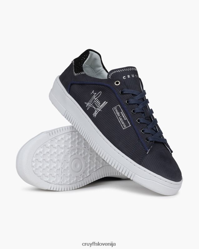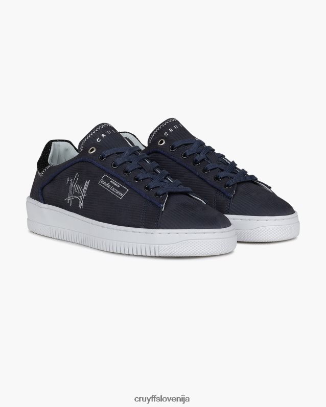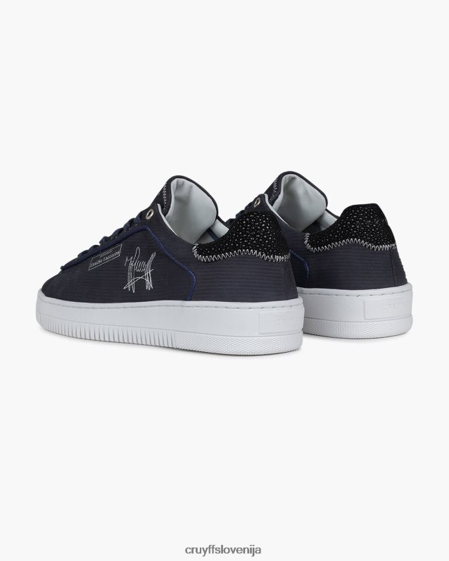 superge cruyff joan v mornarsko modri barvi. te moške superge so opremljene z reliefnim zgornjim delom iz mehkega nubuka v kombinaciji s črnim zatičem na peti. zaključek s srebrnimi detajli, mornarsko modro vezavo v bruto zrnu in belimi cik cak šivi. opremljen s podlogo iz belega govejega usnja za vrhunsko udobje in nameščen na belem podplatu.